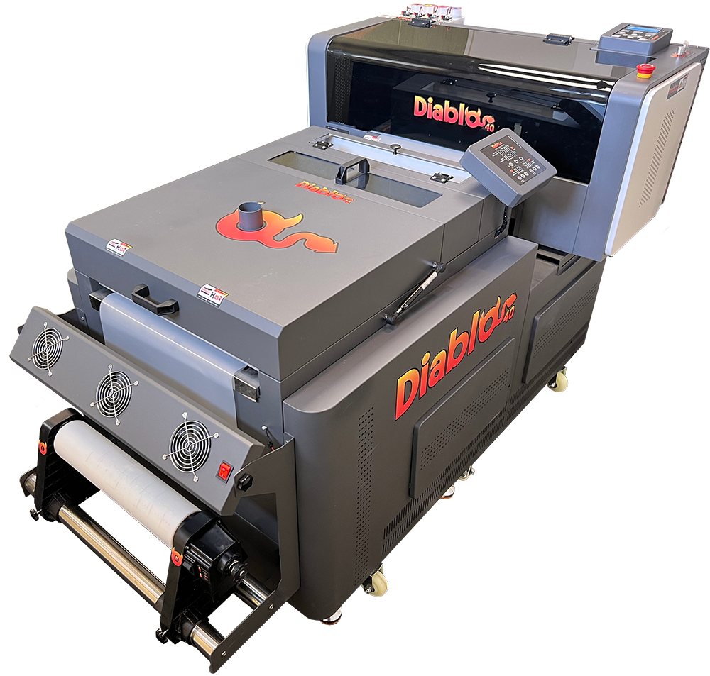 Each Diablo DTF system, regardless of its width, boasts an all-in-one chassis seamlessly integrating the printer, powder shaker, and oven. This revolutionary design not only ensures consistent quality across all widths but also provides an efficient and space-saving solution, perfect for print shops of every size.